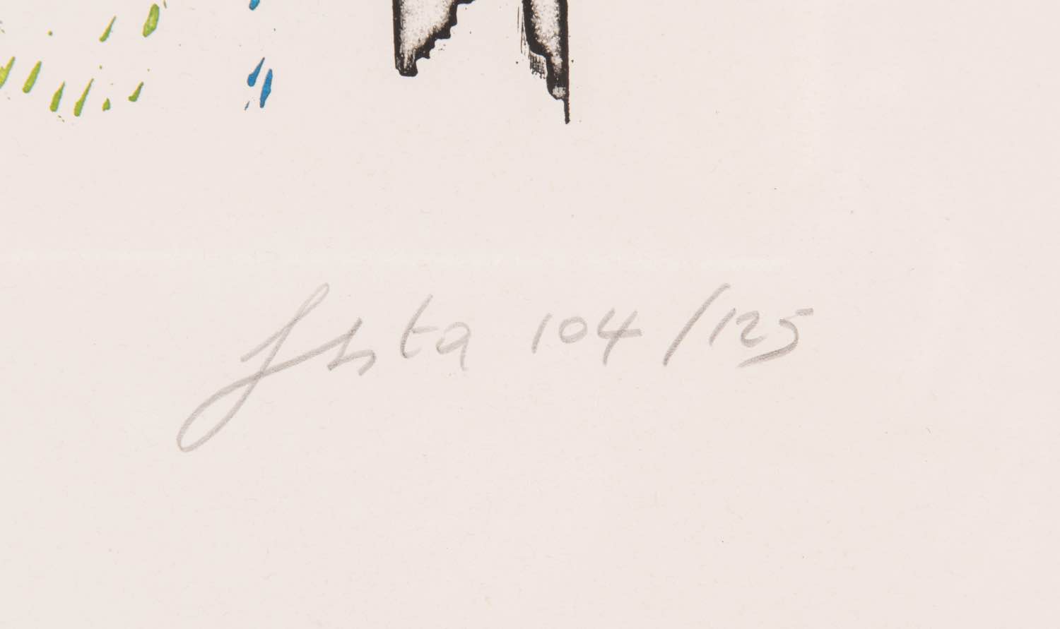 Acquaforte acquatinta a colori su carta firmata e numerata in basso a destra Festa 104/125, Lastra H cm 29x40