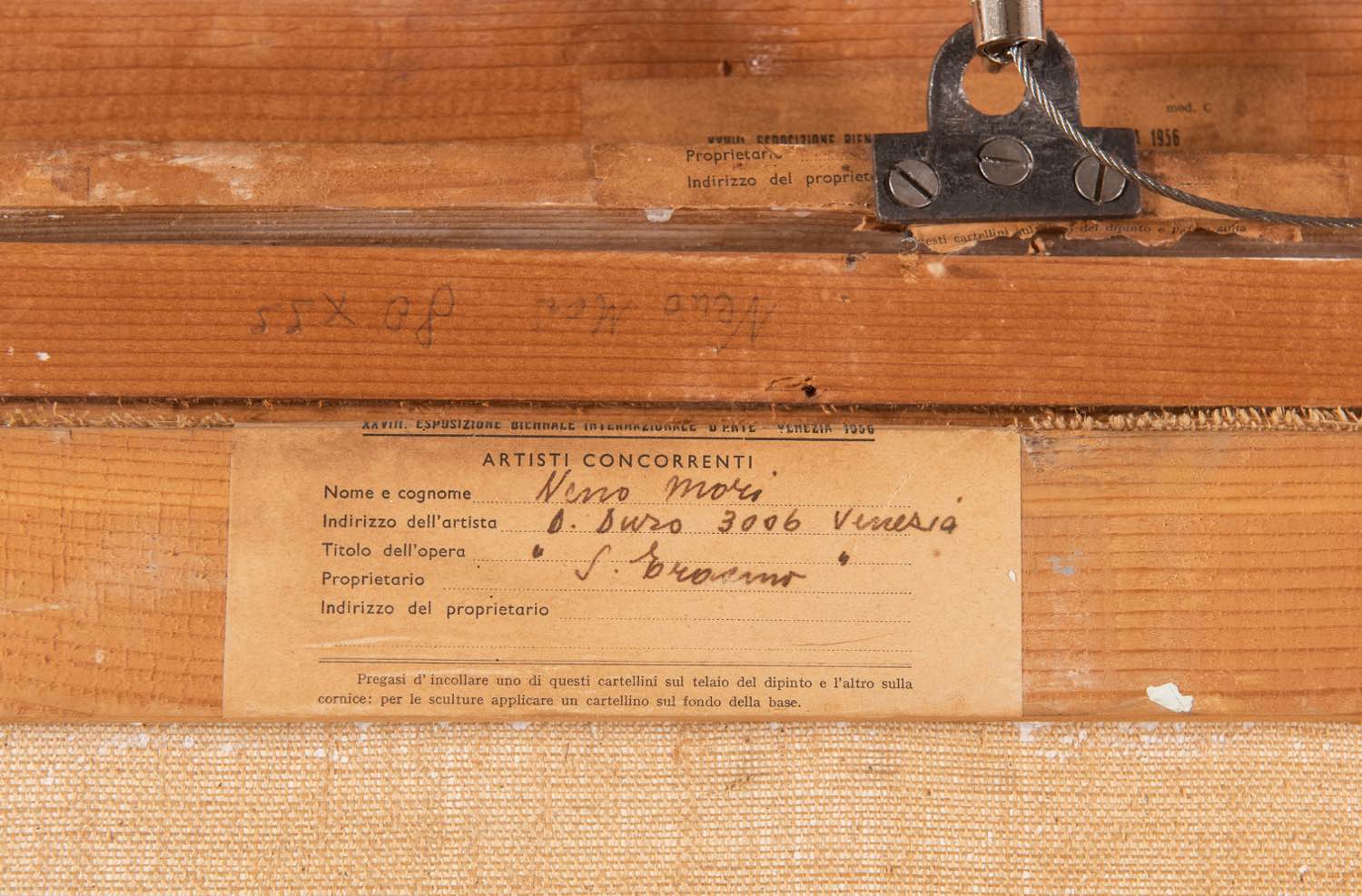 Olio su tela firmato in basso a destra Neno Mori 1956, H cm 56x80 Al retro reca etichette XXVIII Esposizione Biennale Internazionale d’Arte - Venezia, 1956.