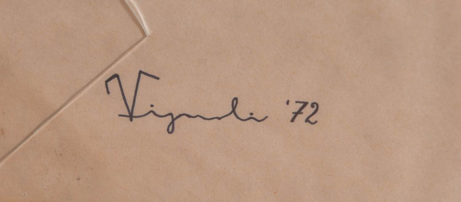 Artista del XX secolo, “Composizione”, 1972. Tecnica mista su tela, firmato e datato in basso a sinistra Vignoli ‘72, H cm 95x70