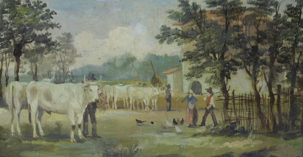 Renato Zini (Firenze, 1890 - 1969) FIGURE IN CAMPAGNA Olio su tavola, cm. 24,5x13,5 Firma in basso al centro.