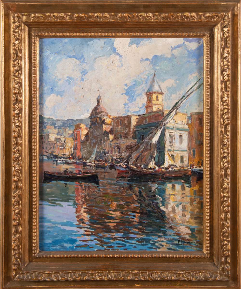 Lot 197 | Pasquale Manduca (Pozzuoli 1878 - 1966), “Porto con barche”.