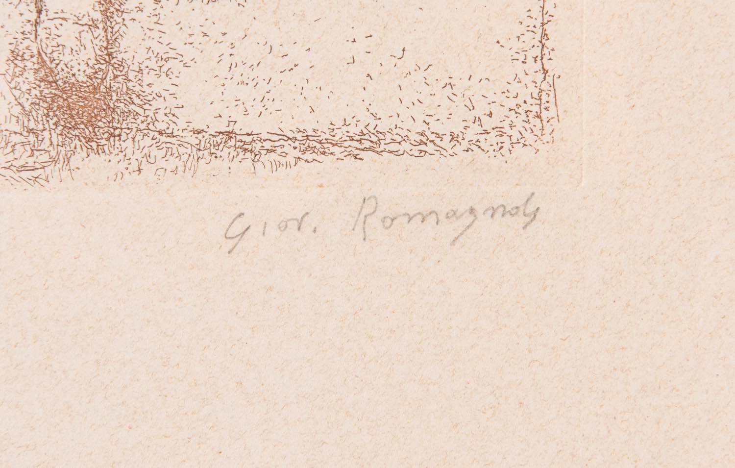 Acquaforte su carta firmata in basso a destra Giov. Romagnoli, esemplare in basso a sinistra p.a, Lastra H cm 24x18 Bibliografia di riferimento: F. Solmi, 'Romagnoli, Gravure', La Loggia edizioni d'arte - Bologna, pubblicata a tutta pagina p. 103, tav. 110.
