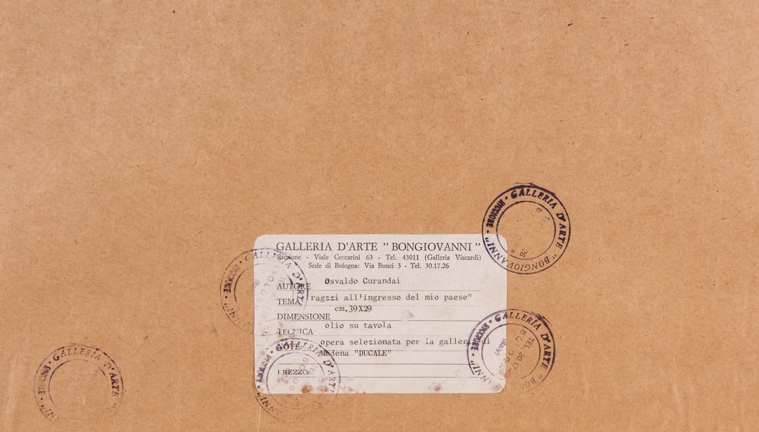 Olio su tavola firmato in basso a destra Osv. Curandai, H cm 39x29 Al retro reca etichetta e timbri della Galleria d'arte Bongiovanni - Bologna. Opera selezionata per la Galleria Ducale - Modena come da etichetta.
