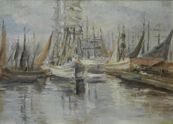 Giorgina Lattes BARCHE NEL PORTO Olio su compensato, cm. 42x31,4 Firma in basso a sinistra.