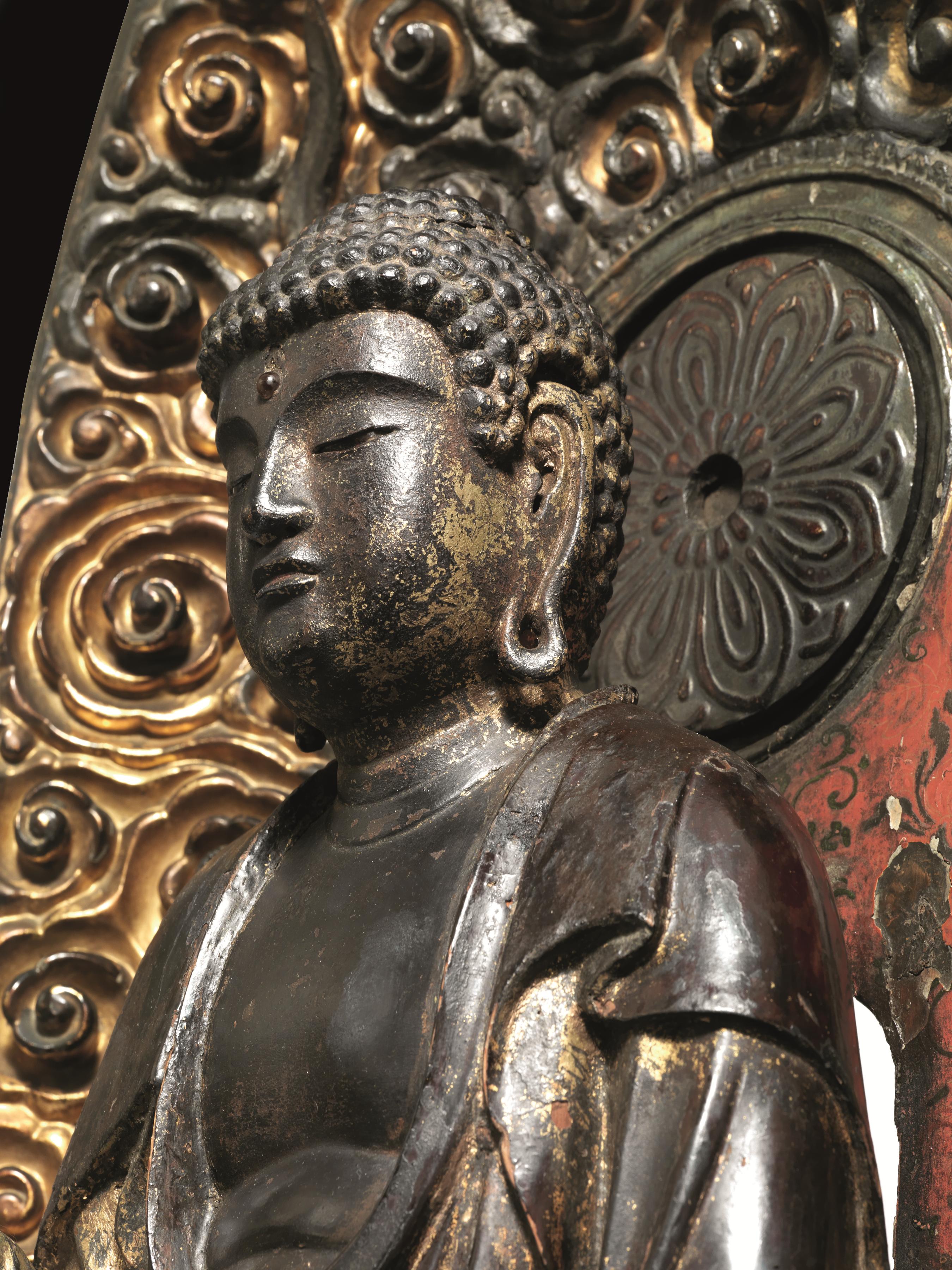 Grande scultura, Giappone sec. XVIII - XIX, in legno laccato e dorato,...