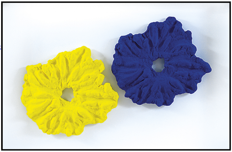 PINELLI PINO Catania 1938 “Pittura G.BL” pittura su 2 elementi diametro cm 32 cadauno, applicati su tavola, entro teca in legno di cm 56x86. Firma, titolo, anno e località (Milano) al retro dell' elemento di sinistra, dichiarazione d'autenticità e archivio dell'artista su foto con numero d’archivio. Provenienza e pubblicazione sul catalogo d’asta della Meetingart.