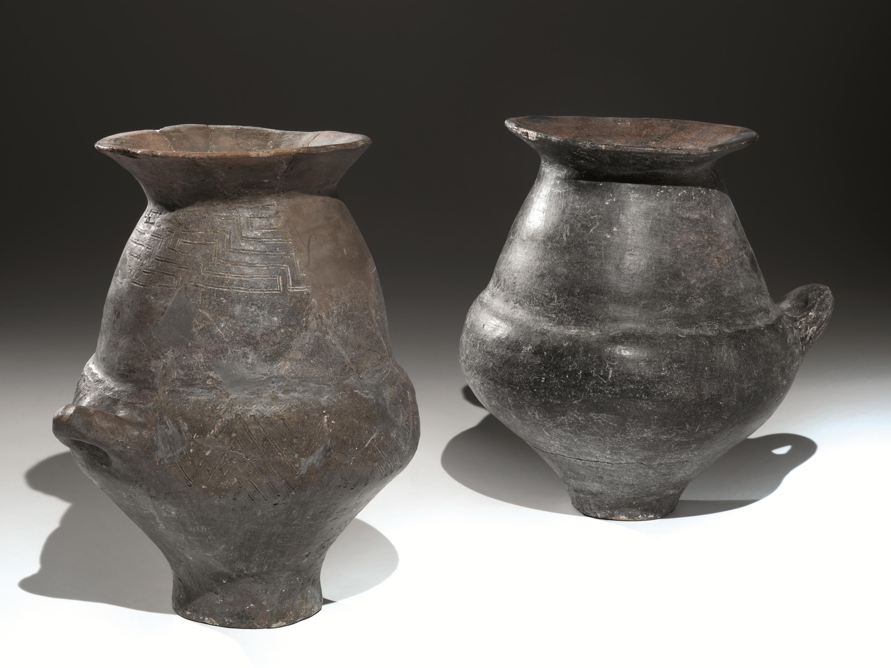 Due cinerari biconici Materia e tecnica: impasto nerastro lucidato a stecca;...
