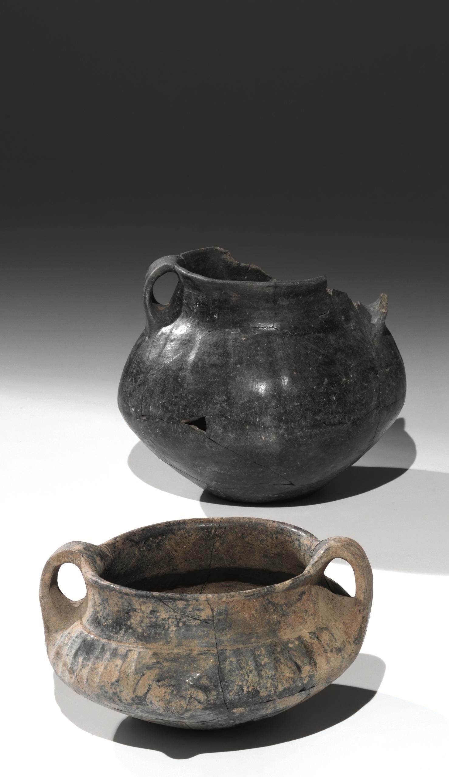Kantharos carenato e ollettaMateria e tecnica: impasto nero lucidato a...