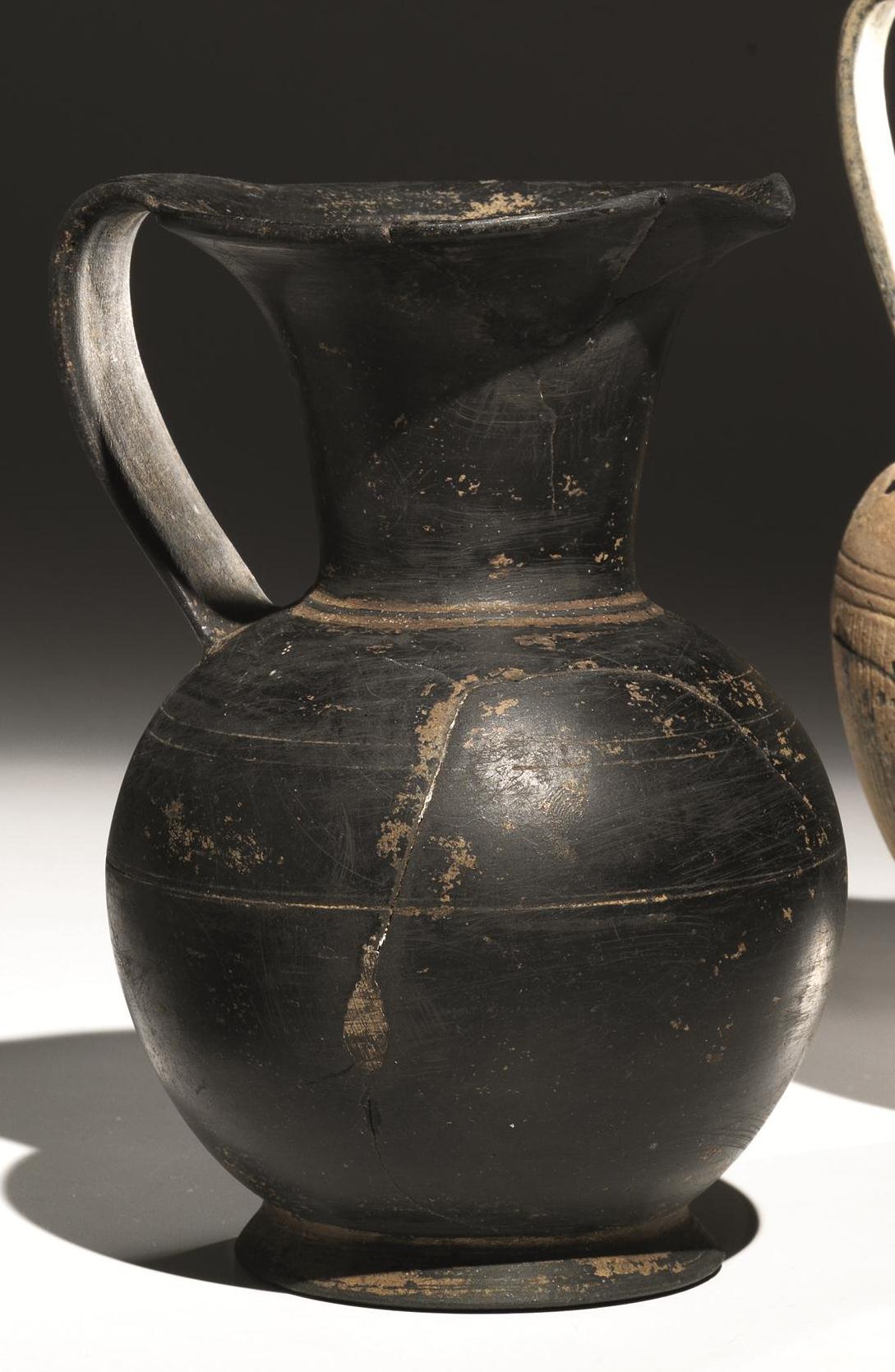 Oinochoe in bucchero Tipo Rasmussen 1979, 7d.Materia e tecnica: bucchero nero...