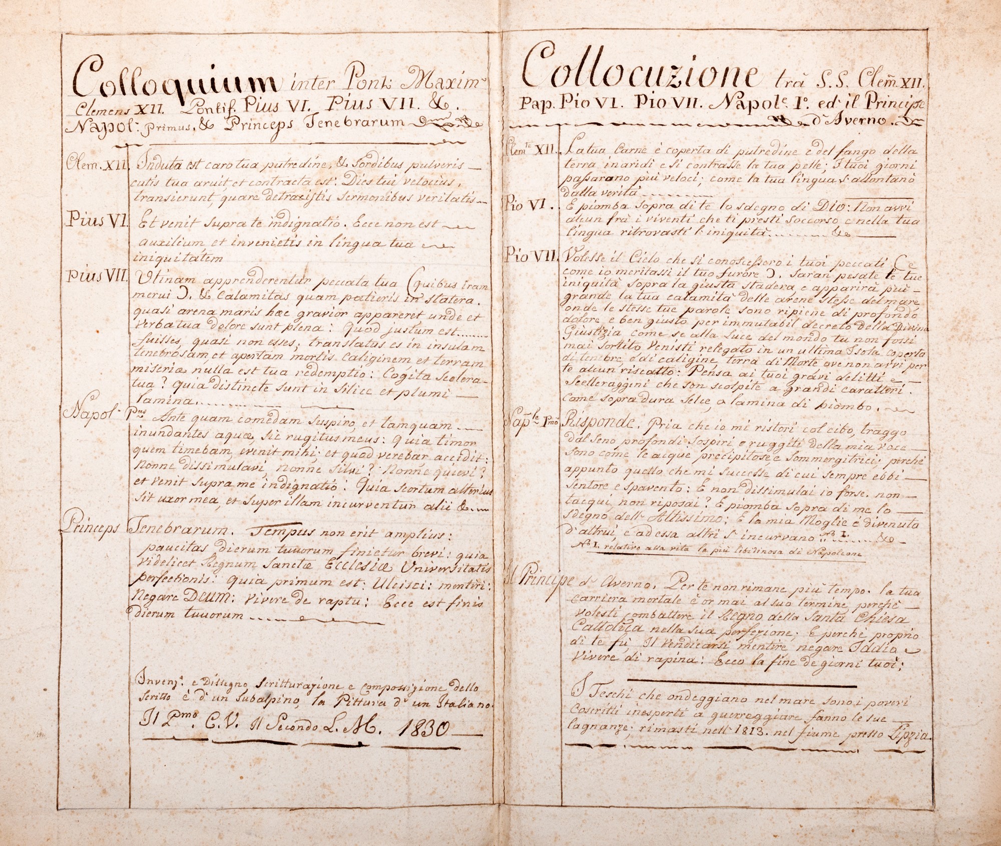 Manoscritti - Napoleonica - Colloquium inter Pont. Max … Collocuzione tra S.S. Clem. XII, Pap. Pio VI, Pio VII, Napol.e I ed il principe d’Averno
