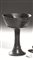 Calice su alto piede con vasca troncoconica e alto labbro, impostato sulla vasca mediante una risega, ampio piede a tromba decorato da anello plastico