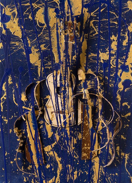 Arman "Senza titolo" 2001 acrilico, ukulele spezzato su tela applicata su tavola