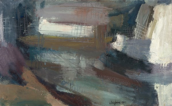 Lot 293 | Alfredo Chighine "Città" 1971 olio su tela cm 50x80 Firmato e datato 1971 in bas