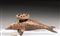 Piccolo unguentario realisticamente modellato come un delfino incurvato con le pinne aperte e il corpo decorato a puntini, sulla schiena bocchello circolare con raggiera di petali