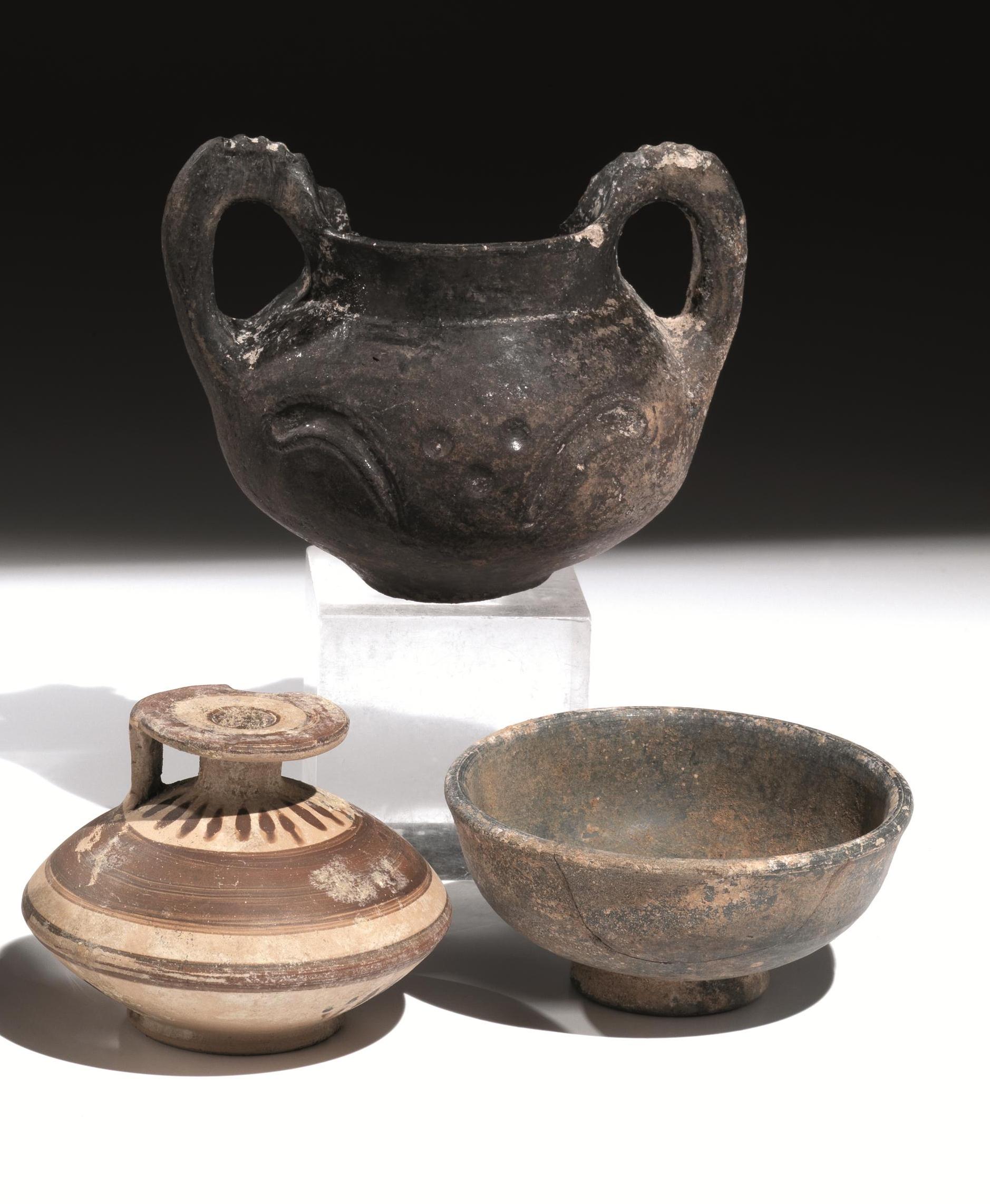 Due aryballoi etrusco corinzi, olletta e due coppetteMateria e tecnica:...