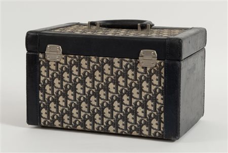 CHRISTIAN DIOR Vanity beauty case con classico motivo monogramma e inserti in pelle. Cm 19x30,5x20.