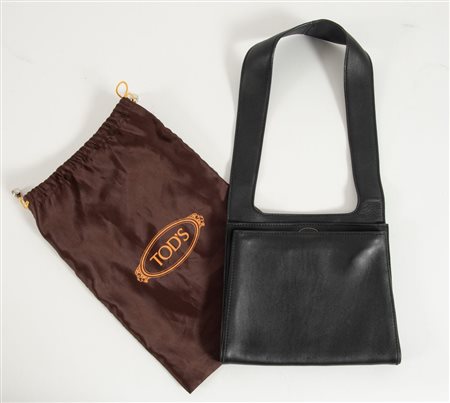TODS Borsa da spalla in pelle nera realizzata a due vani. Cm 19x21x2. Lunghezza manico: cm 54. Reca marchi Tods e Made in Italy. Corredata di dustbag originale.