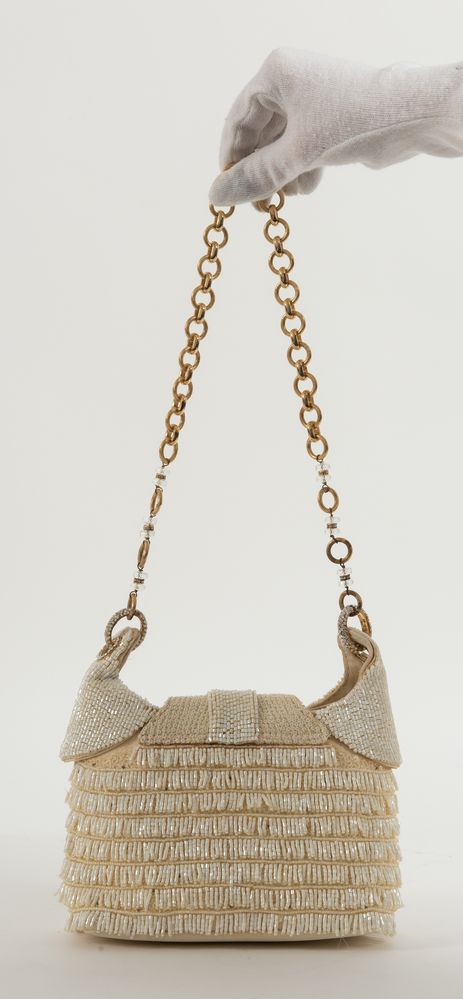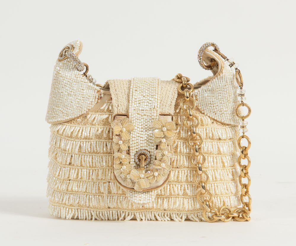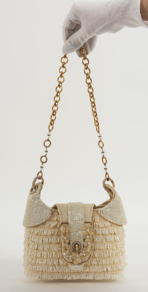 ANONIMO Borsa da spalla interamente decorata con pailettes e perline.Cm13,5x20x6,5. Manico a catena in metallo dorato decorato con strass di cm 60.