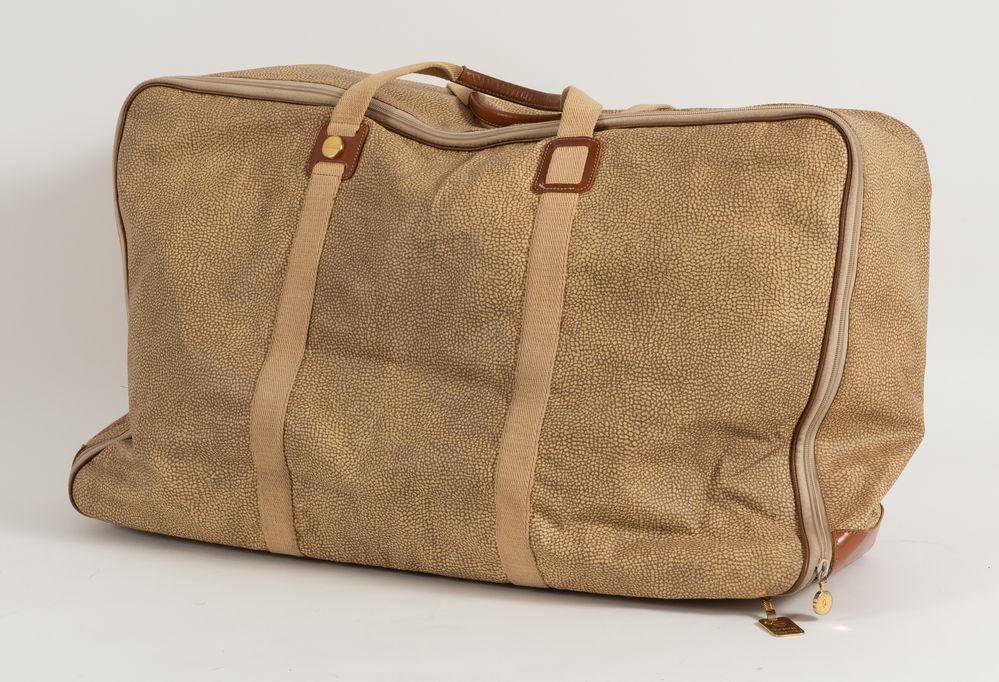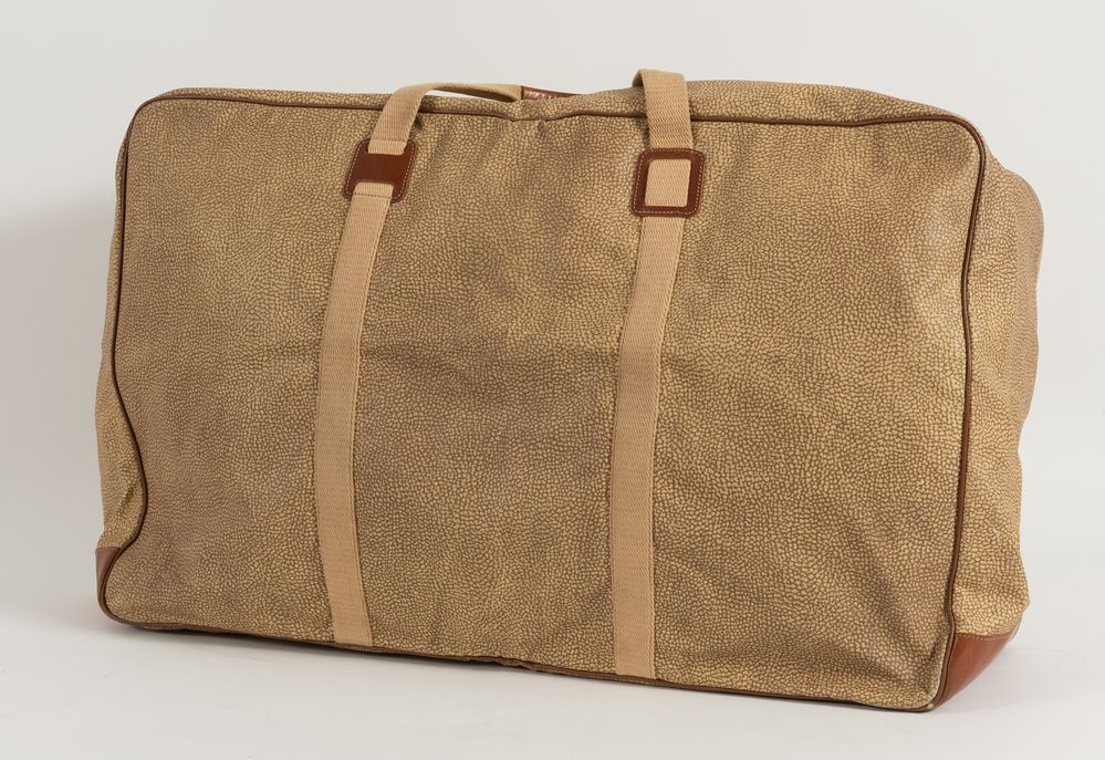 BORBONESE Borsone da viaggio in pelle con inserti in cuoio. Cm 38 x 52 x 16.