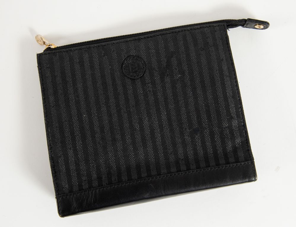 FENDI Pochette in tela. Cm 17,5x20,5. Reca marchi Fendi Roma Italy 1925 e codice di riferimento prodotto parzialmente leggibile. (Difetti)