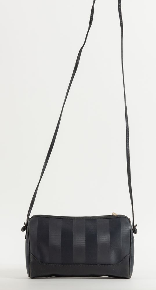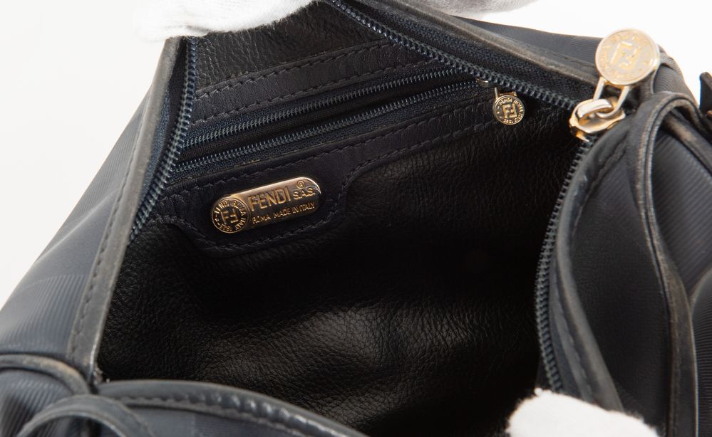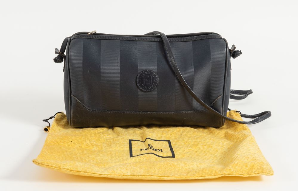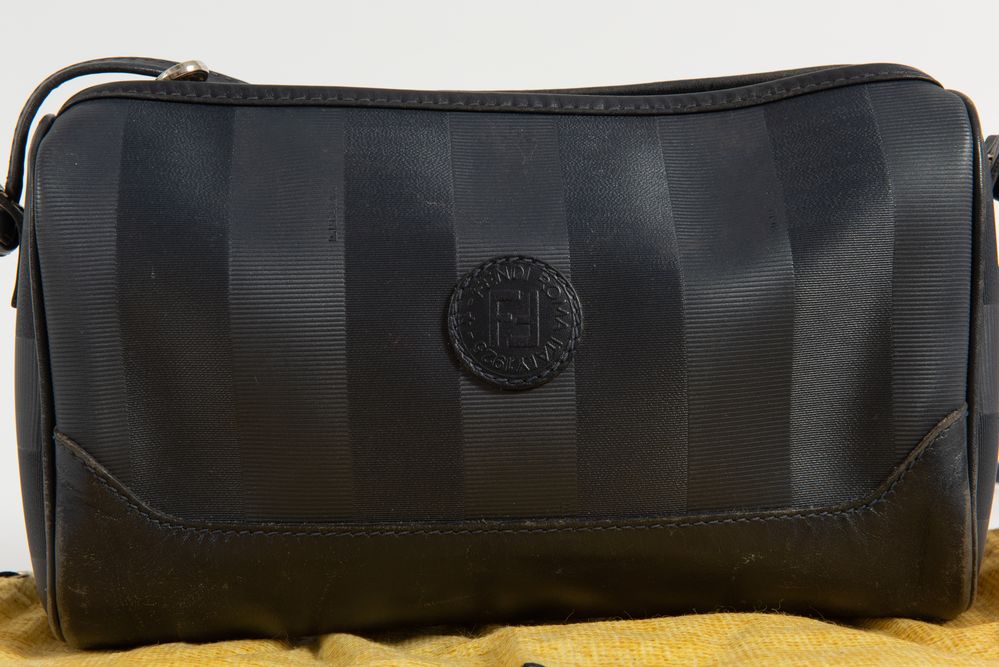 FENDI Pequin borsa tracolla. Cm 15,5x25. Tracolla regolabile di cm 132. Reca marchi Fendi Roma Italy 1925 e codice di riferimento prodotto. Corredata di dustbag originale. (Lievi difetti)
