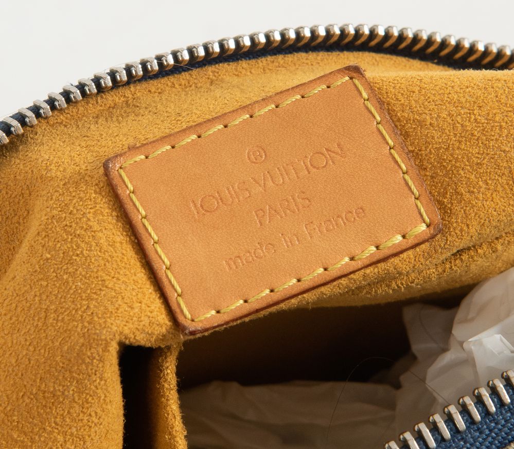 LOUIS VUITTON Borsa da spalla modello Baggy in tessuto denim/Jeans logato. Interno rifinito in tela con un vano portaoggetti. Cm 25x32,5x8. Reca marchio Louis Vuitton Paris Made in France.