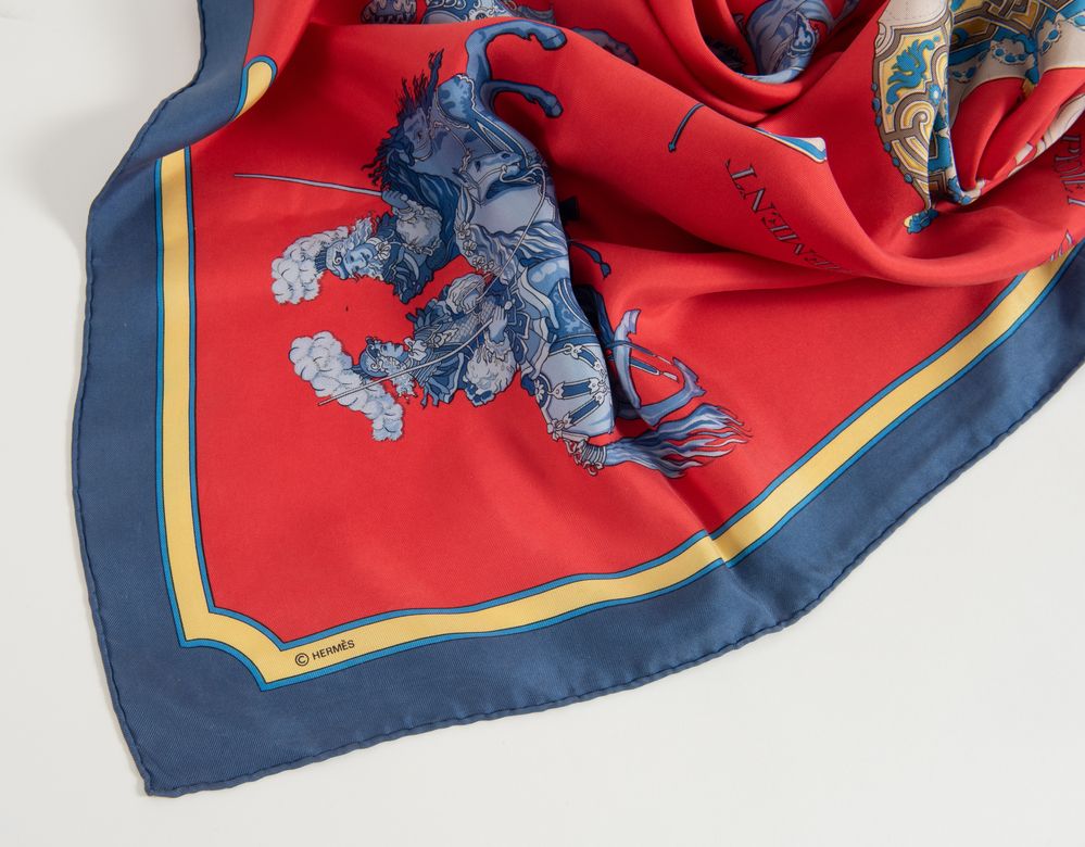HERMÈS Foulard Carrousel by Christiane Vauzelles, 1984. Cm 86x89. Firmato Hermès Paris. Composizione 100% seta.