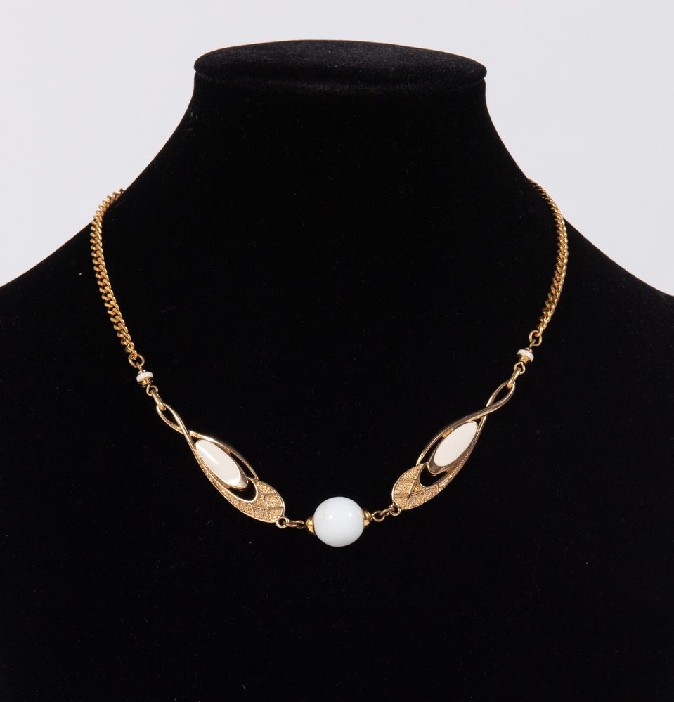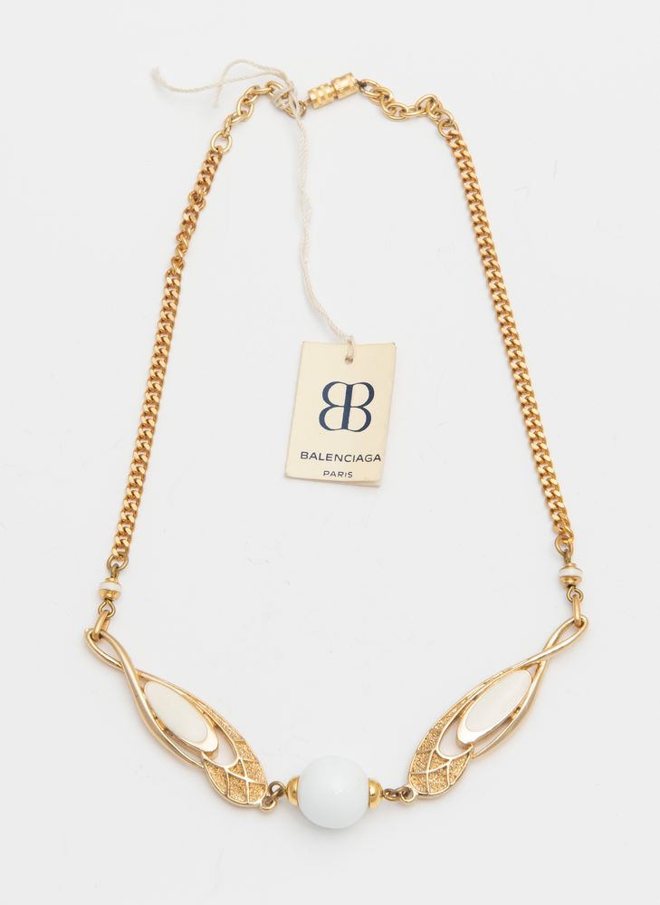BALENCIAGA Collier con elementi in smalto,boule bianca,catena dorata. Anni '80 / '90. Reca etichetta originale.