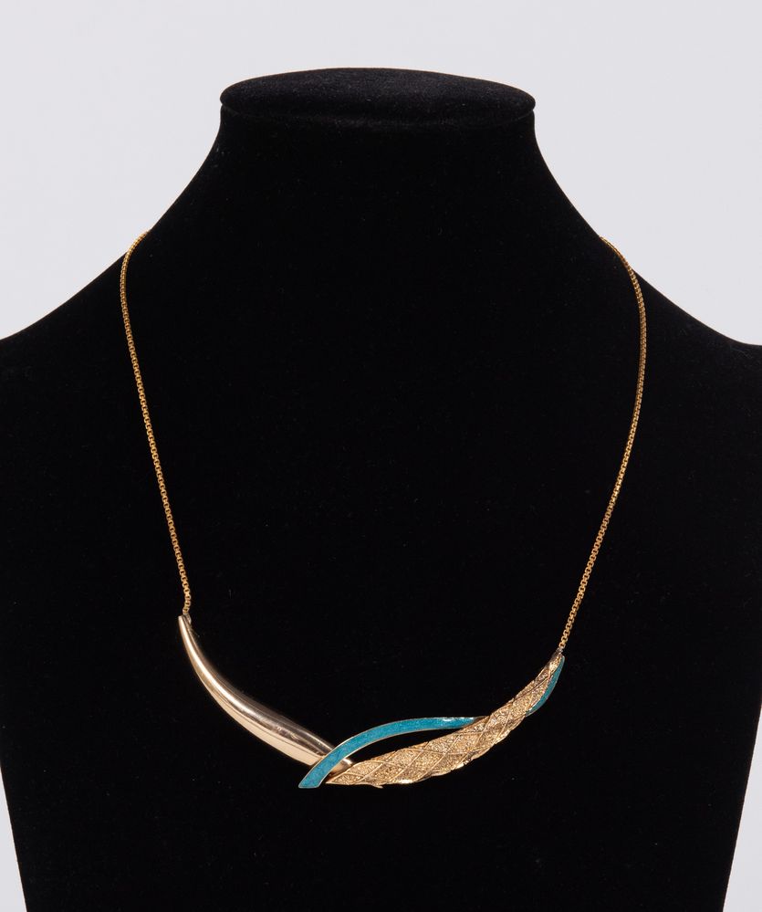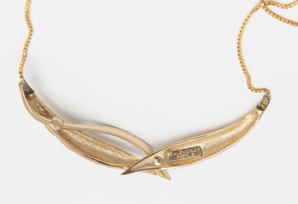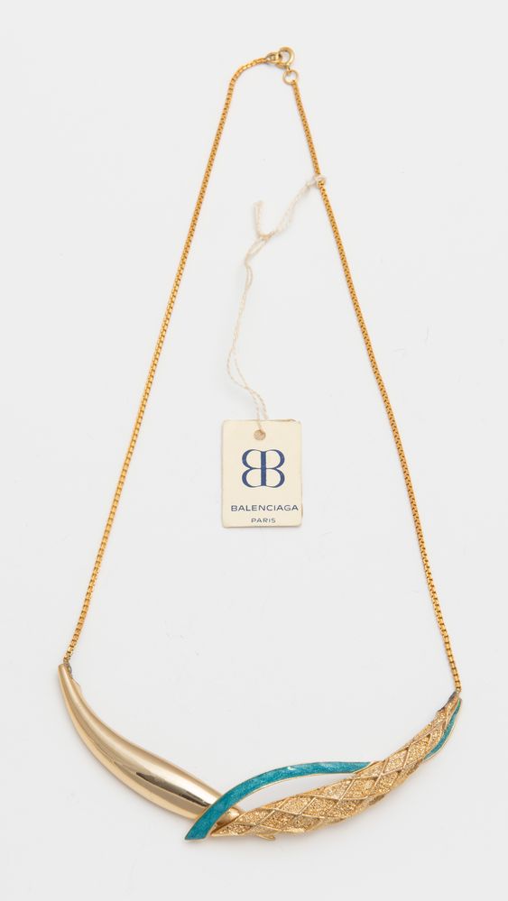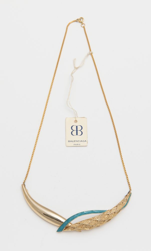 BALENCIAGA Collier con inserto in smalto azzurro su base dorata. Anni '80 / '90. Reca marchio a fuoco della maison ed etichetta originale.