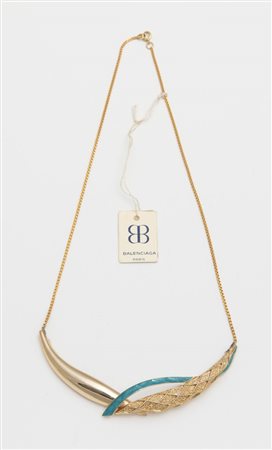 BALENCIAGA Collier con inserto in smalto azzurro su base dorata. Anni '80 /...