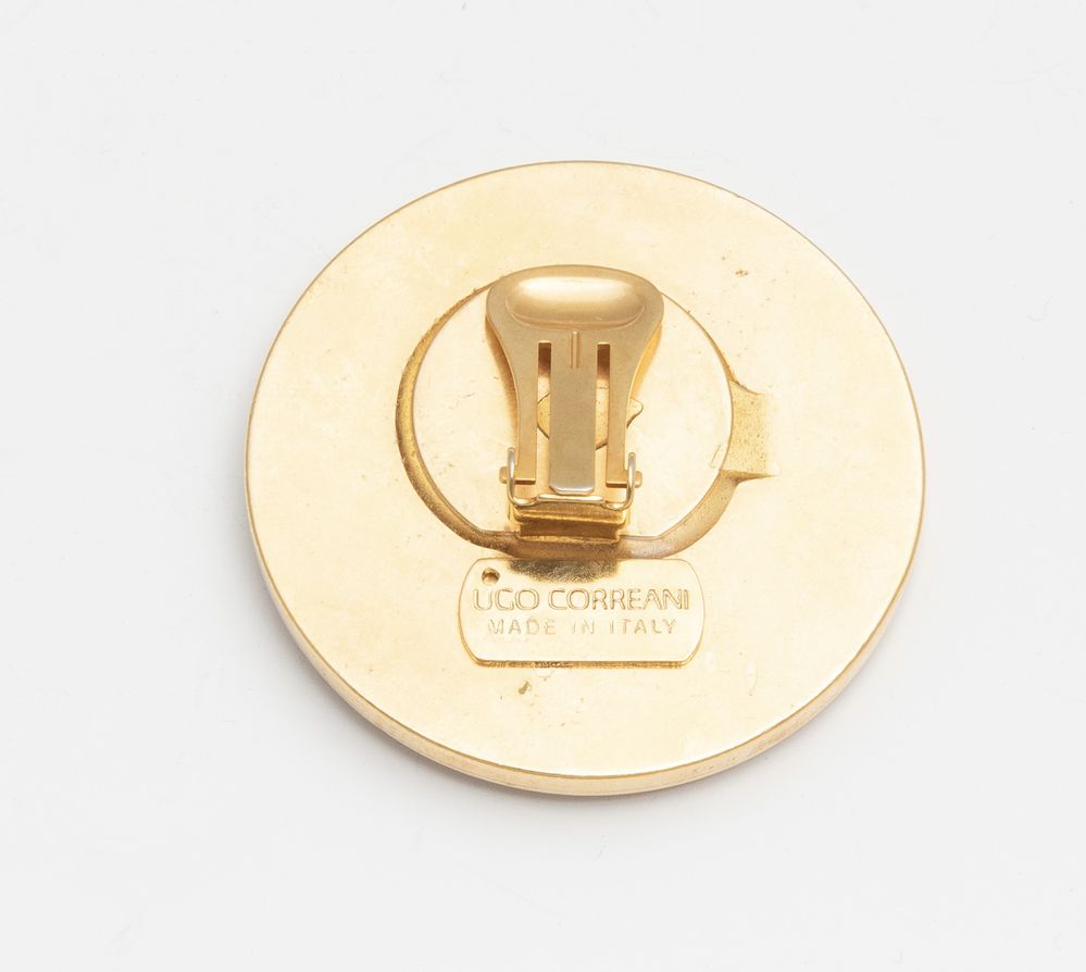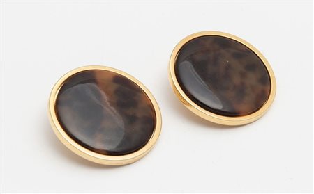 UGO CORREANI Orecchini a clips tondi in resina tartarugata su base in metallo...