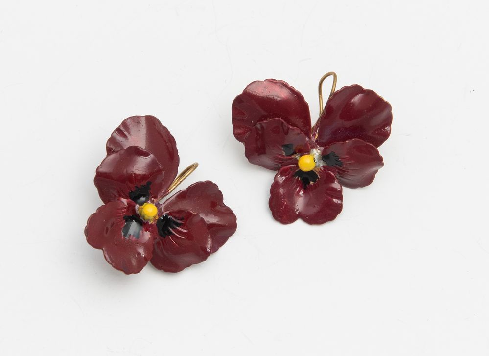 ANNARITA VITALI Orecchini pensees. Petali in ottone saldati e smaltati a...