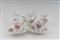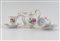 in porcellana bianca, composto da una teiera, una zuccheriera, una lattiera, due tazzine, due piattini (uno con restauro; decori a motivi floreali, profili dorati, manici a guisa di collo di cigno, marca sotto la base