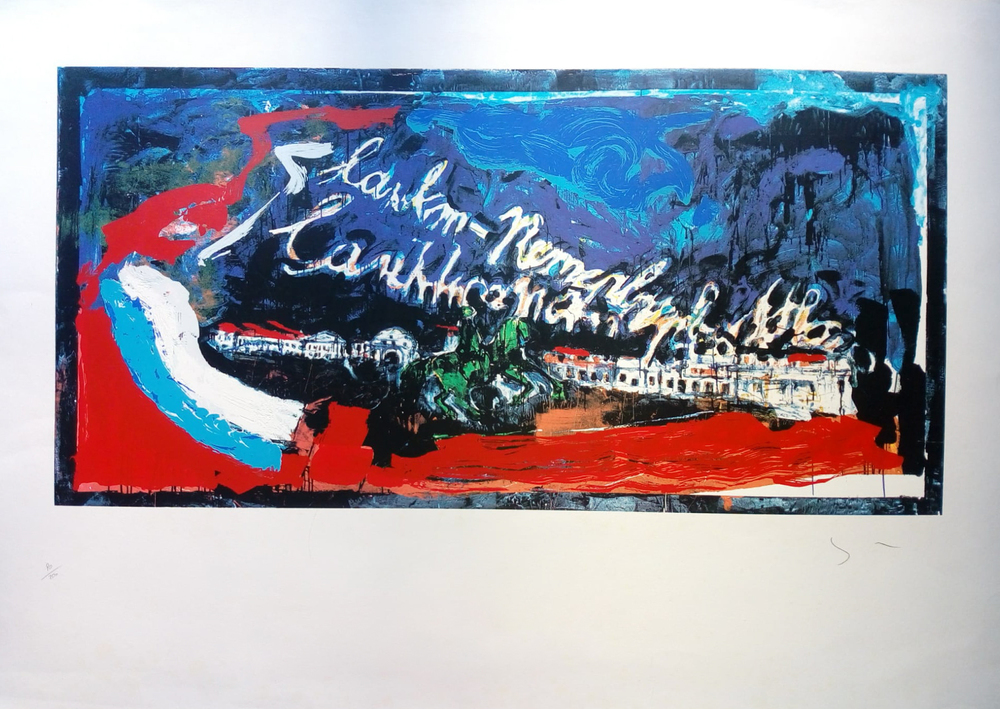 Serigrafia 100x70 cm, firma in basso a destra, tiratura 90/200 in basso a sinistra.