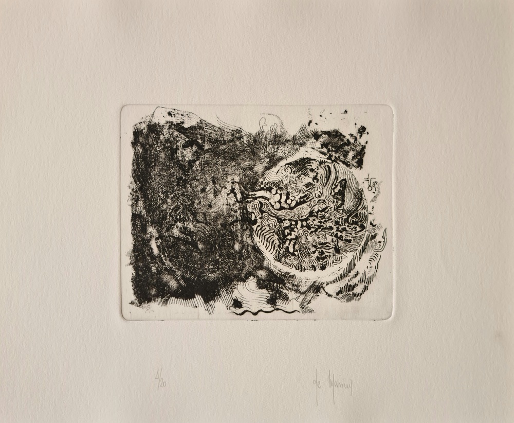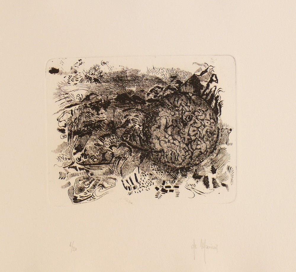 Acquaforte 12x15 cm, firma in basso a destra, tiratura 4/20 in basso a sinistra.