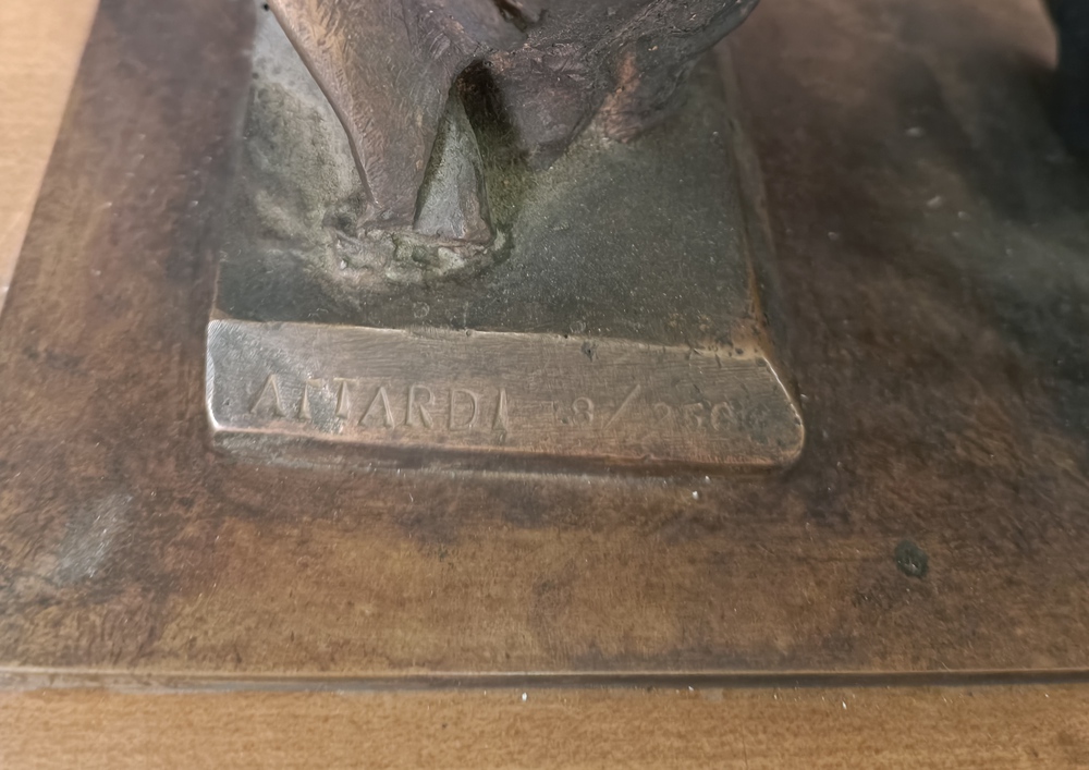 Scultura in bronzo fusione a cera persa 41x25x30 cm, firma e anno sull'opera, tiratura 8/250.