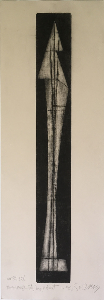 Puntasecca 89x12,5 cm; firma e anno in basso al centro.