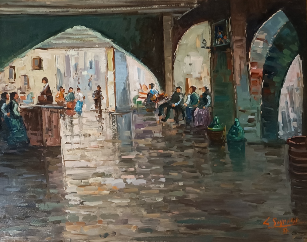 Tecnica mista su tela 50x70 cm, firma in basso a destra.