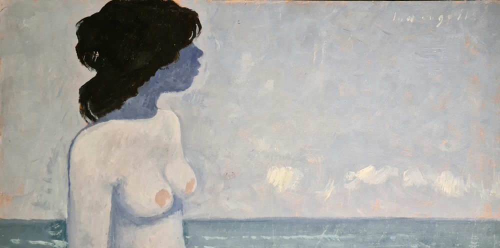 Olio su cartone 42x22 cm; firma in alto a destra, firma, titolo e anno al retro.