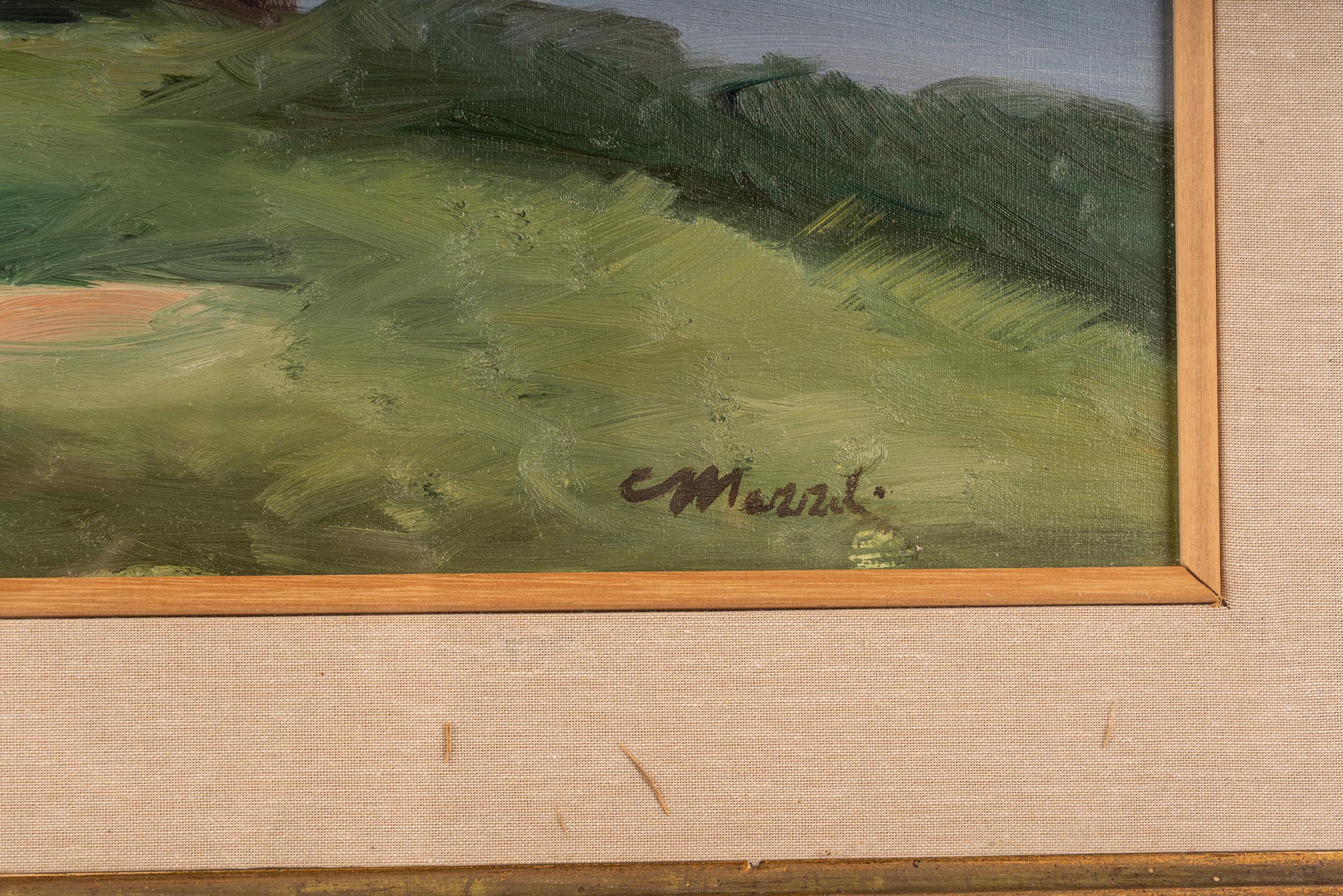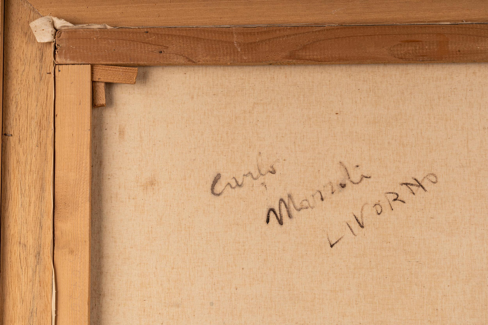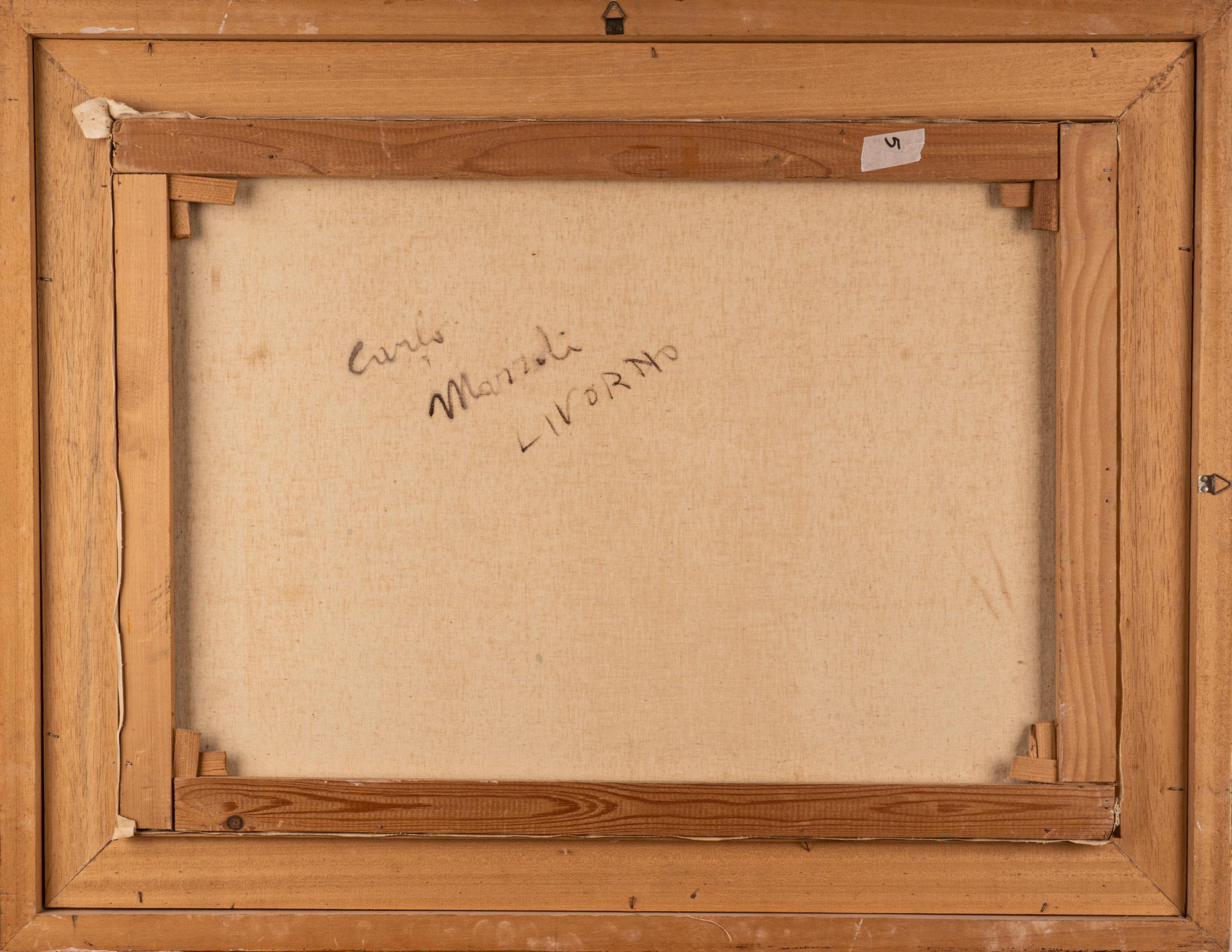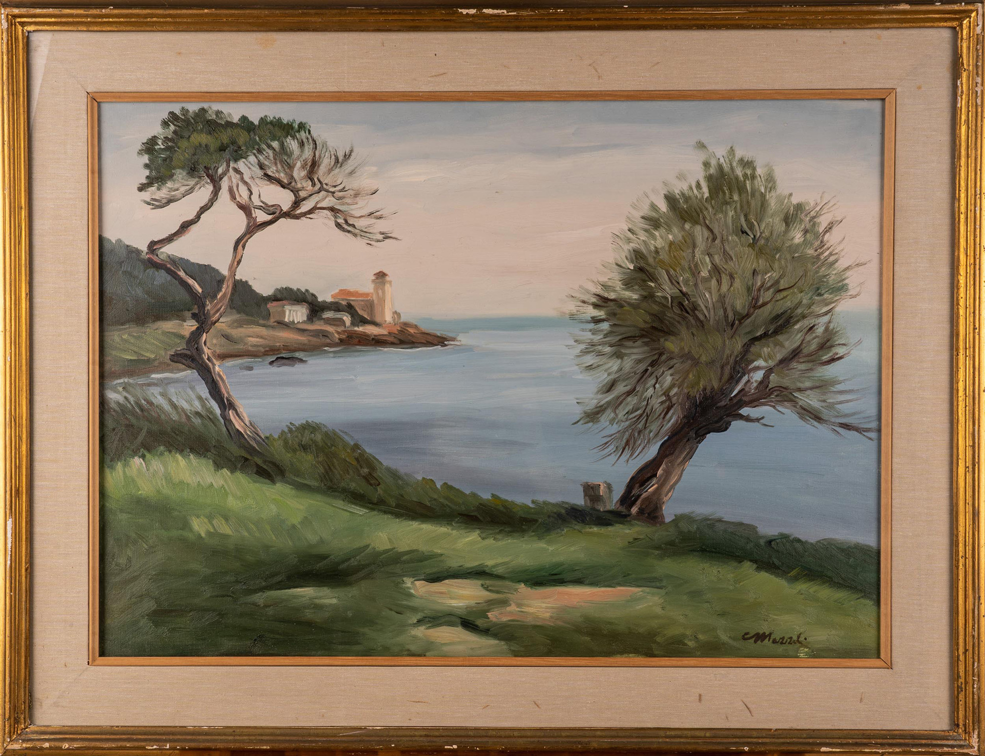 Carlo Mazzoli, Veduta costiera, dipinto ad olio su tela, entro cornice, firmato fronte e retro, Livorno