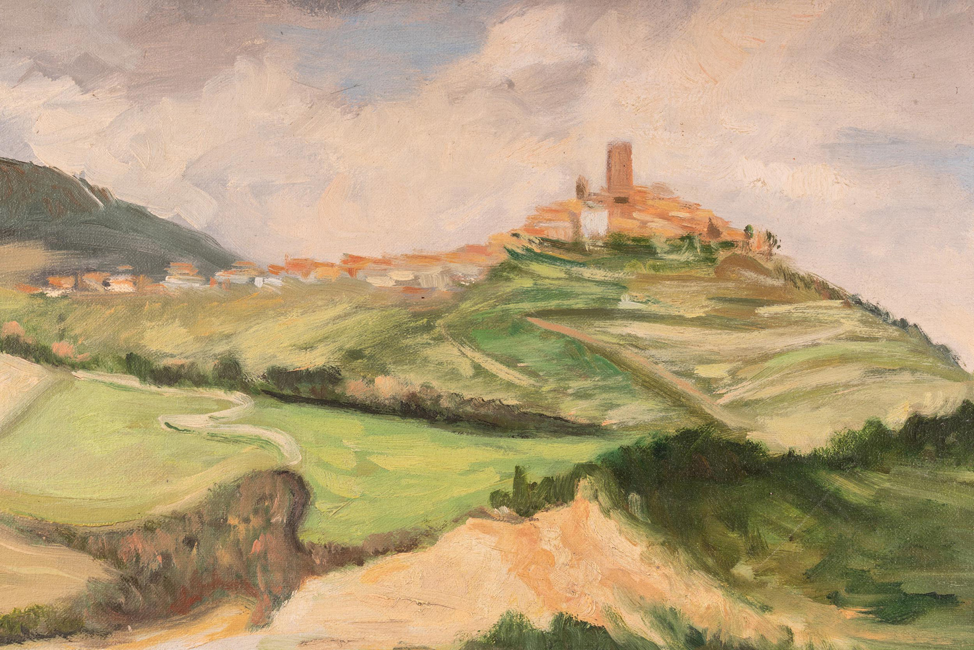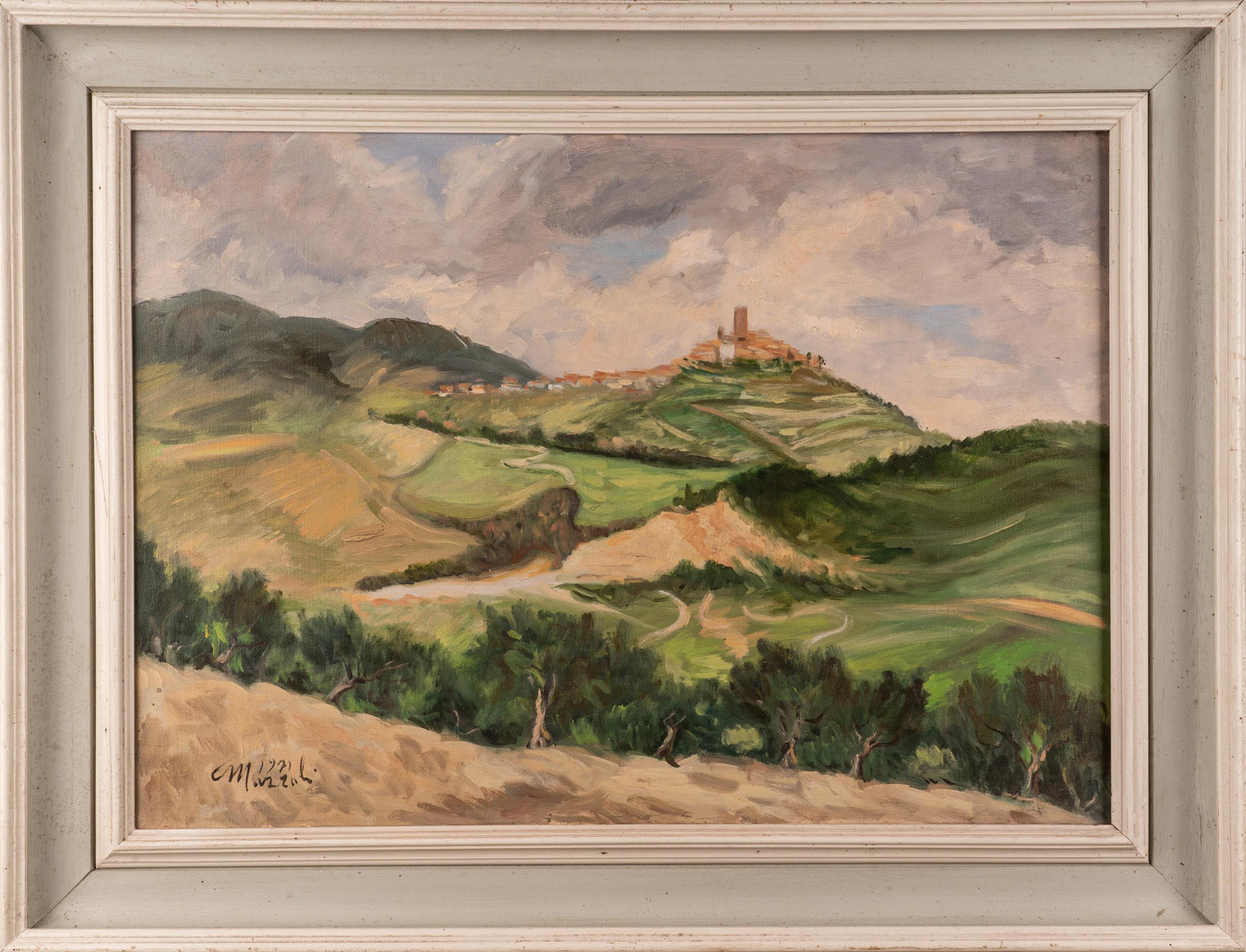 Carlo Mazzoli, Montecatini, dipinto ad olio su tela, entro cornice, firmato fronte e retro