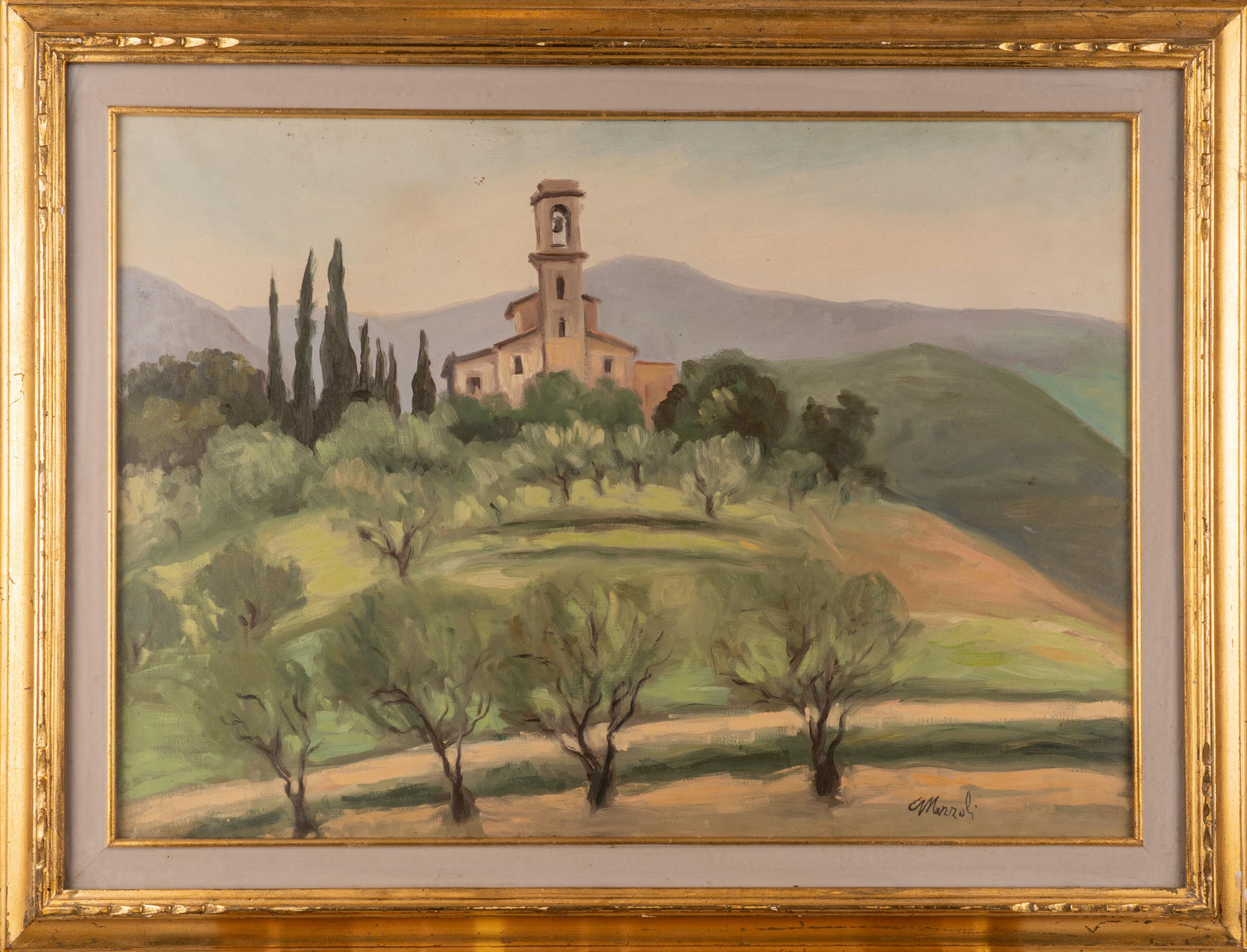 Carlo Mazzoli, Paesaggio, cm 51x70, entro cornice, firmato fronte e retro, 1969