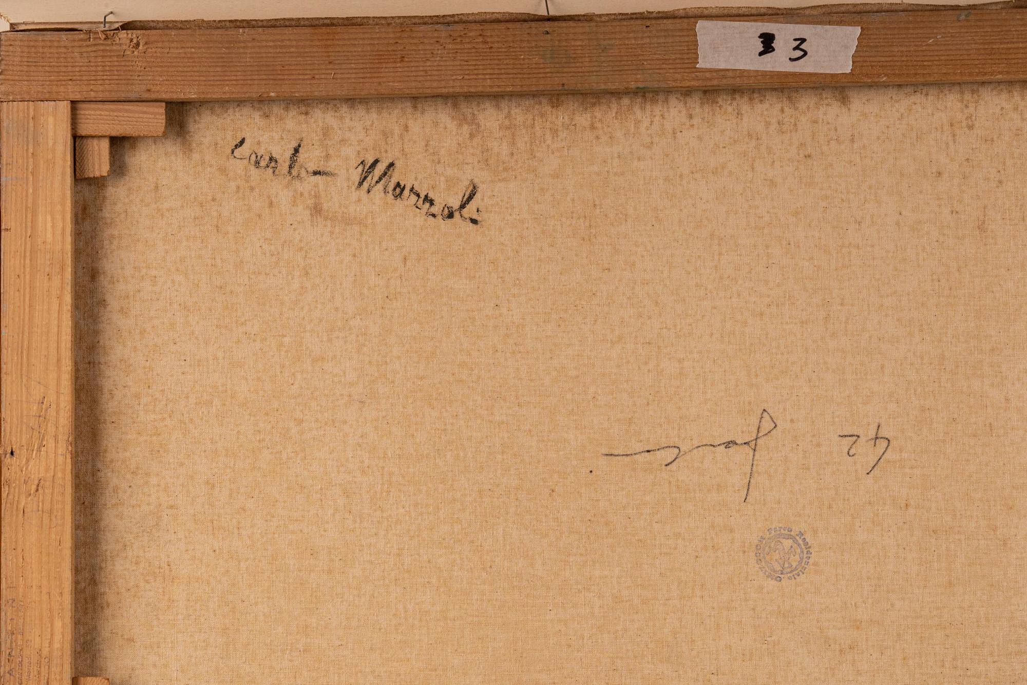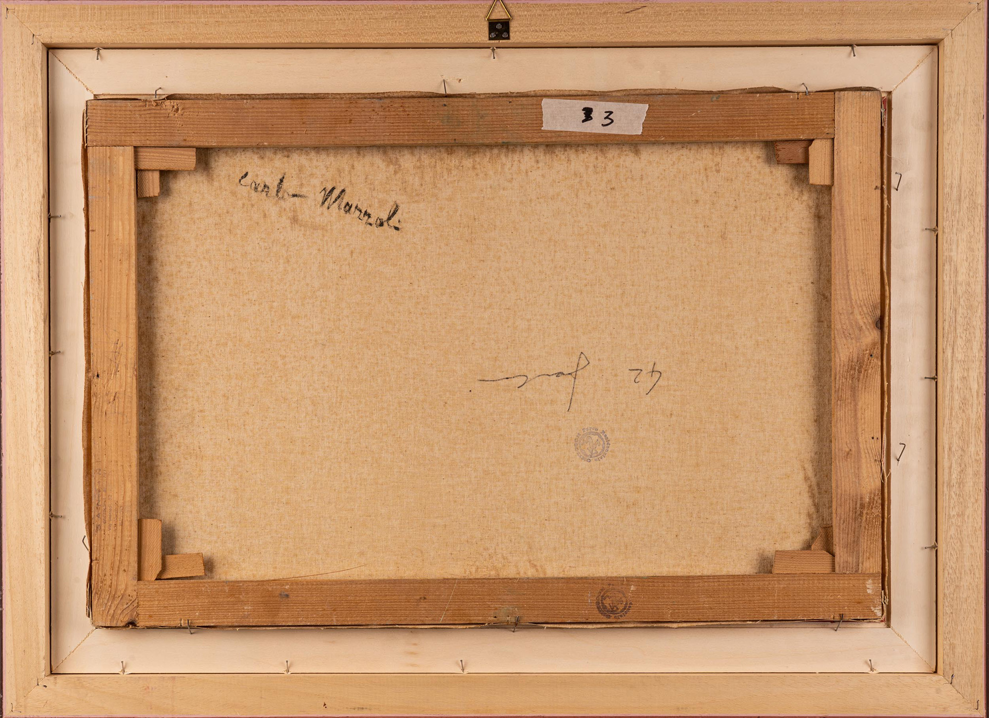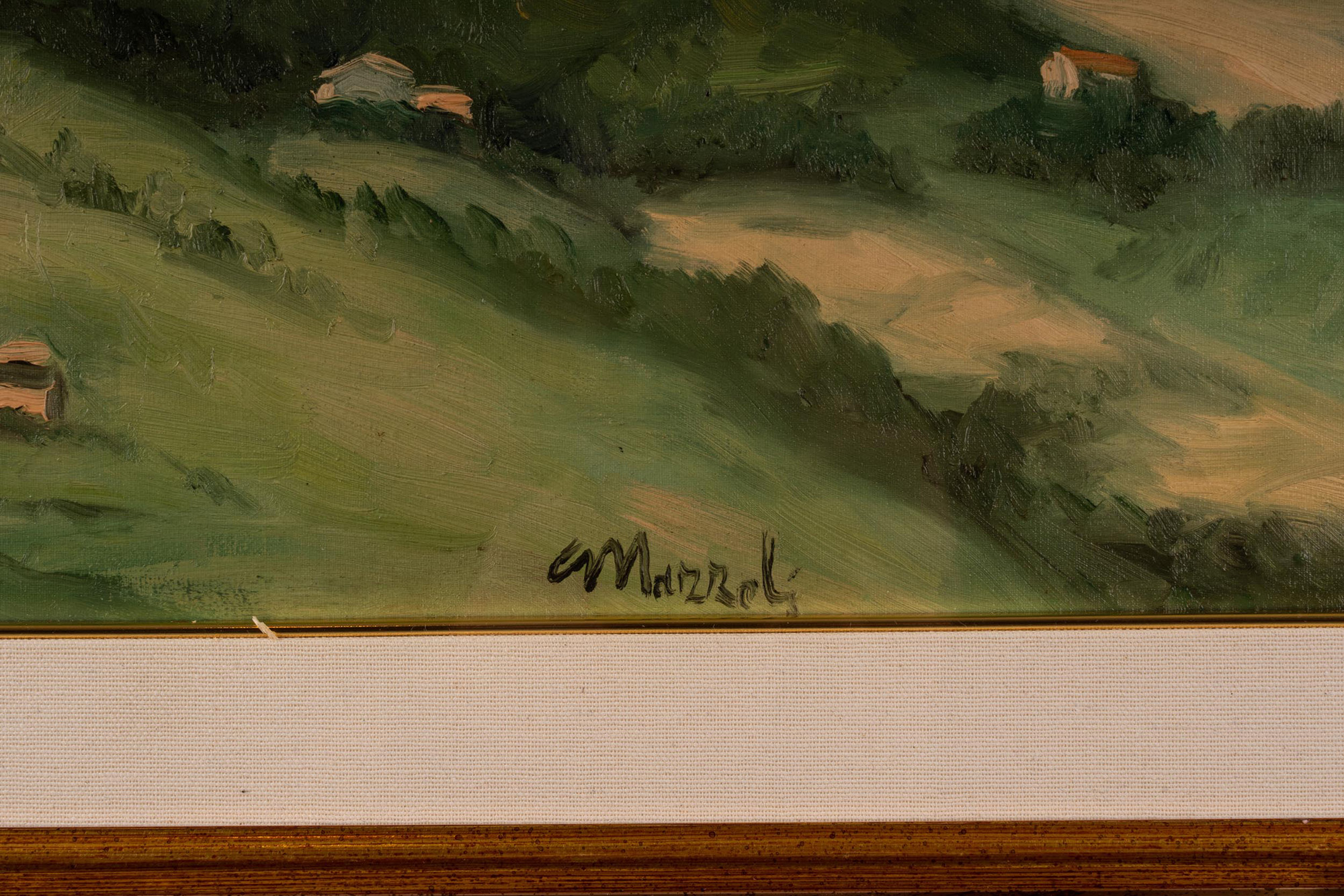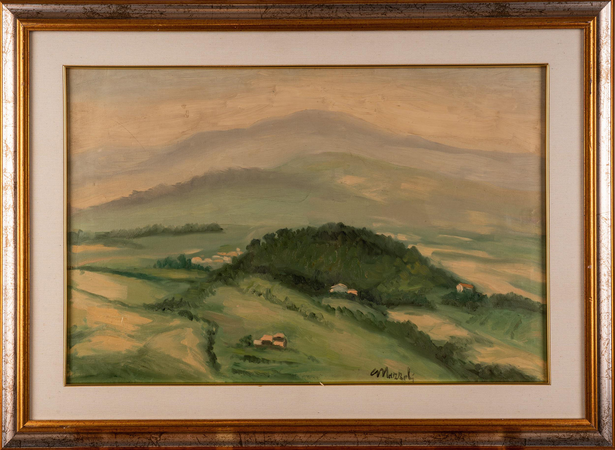 Carlo Mazzoli, Dipinto ad olio su tela raffigurante paesaggio, cm 40x60, entro cornice, firmato fronte e retro