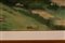 Dipinto ad olio su tela raffigurante paesaggio, cm 40x60, entro cornice, firmato fronte e retro