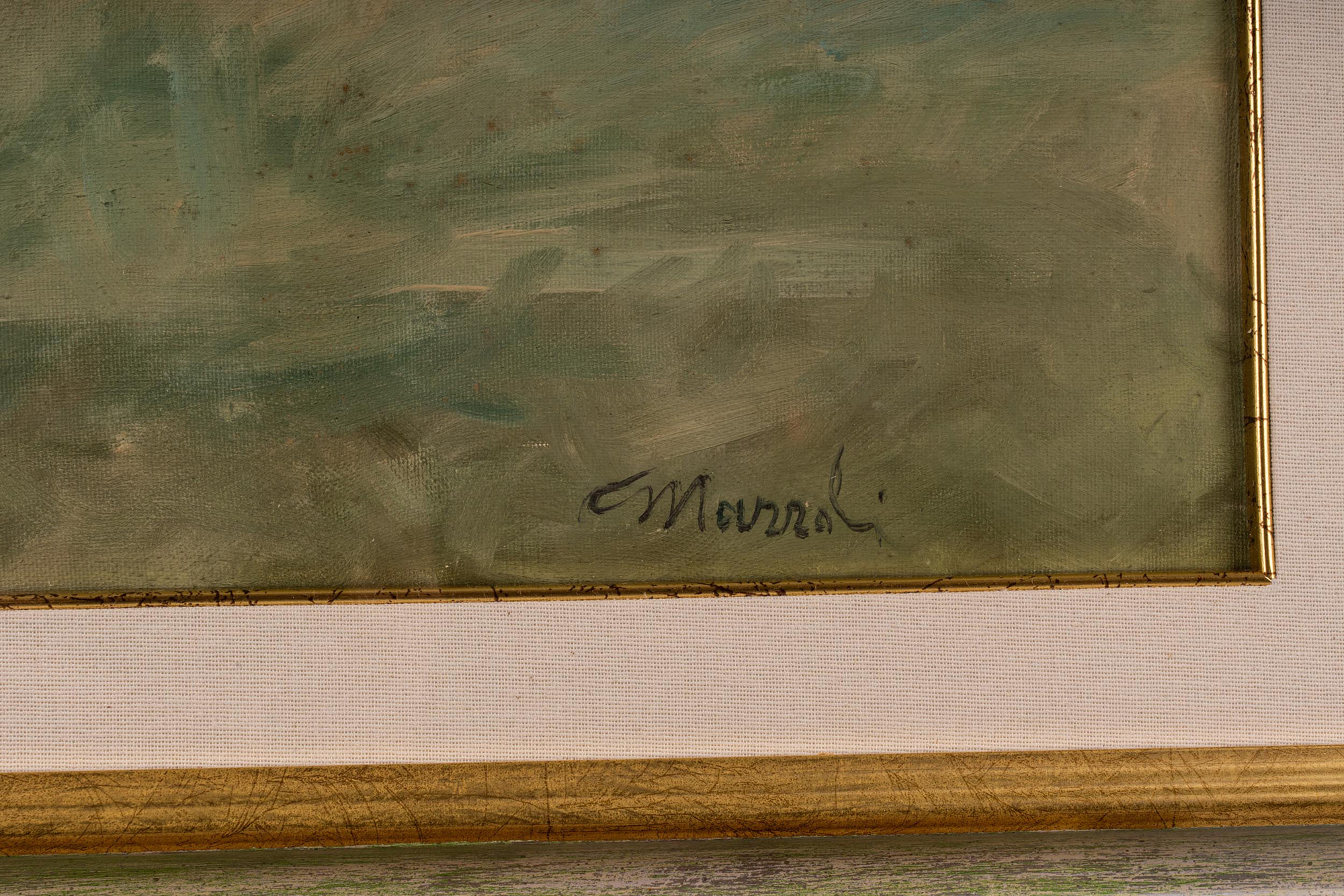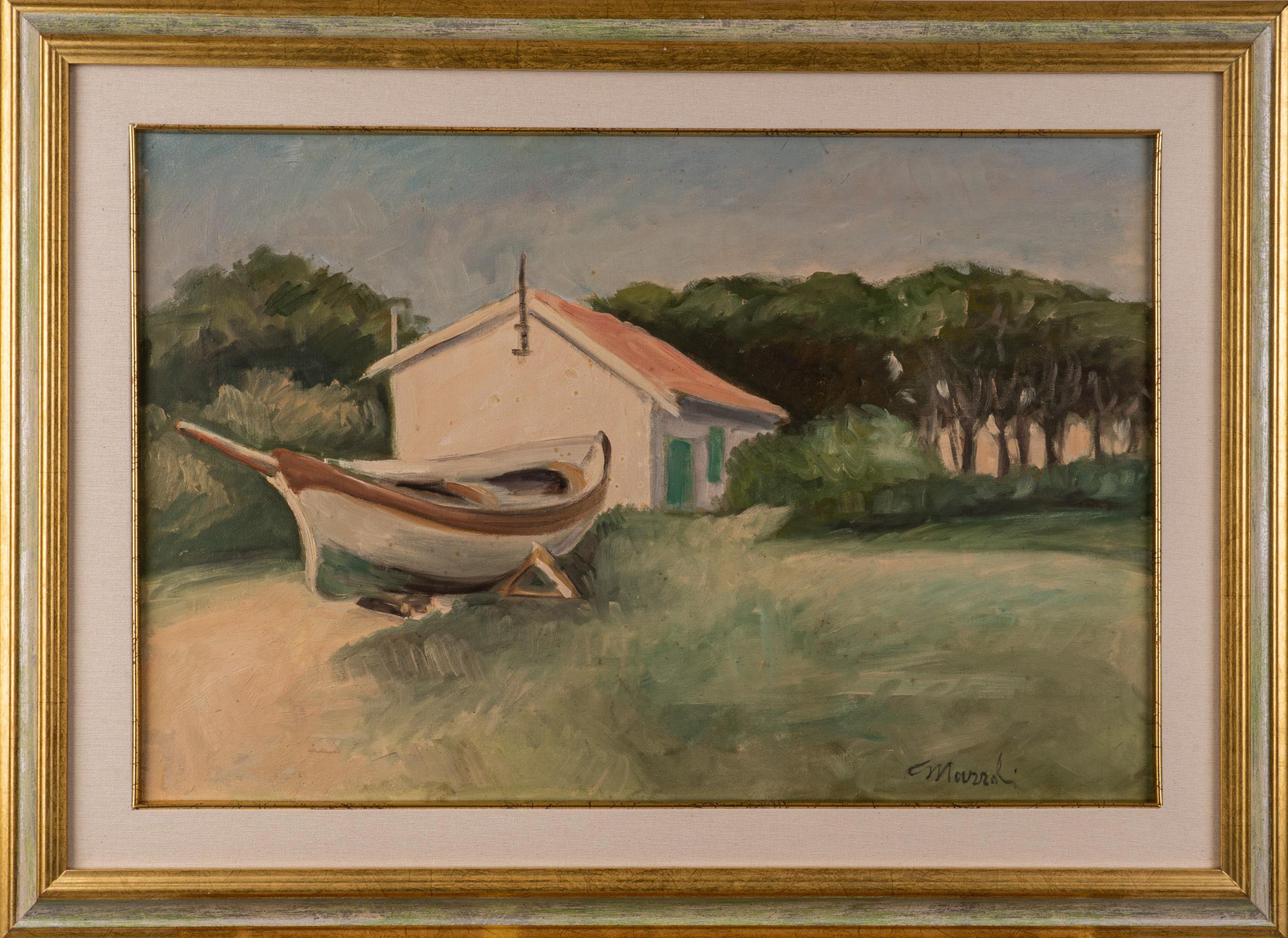 Carlo Mazzoli, Paesaggio con barca e casa, dipinto ad olio su tela, entro cornice, firmato in basso a destra
