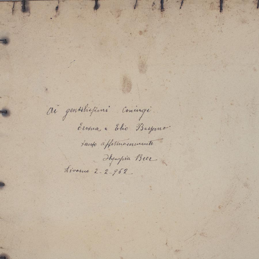 Acquerello su carta, entro cornice firmato Olympia Beer, con dedica al retro