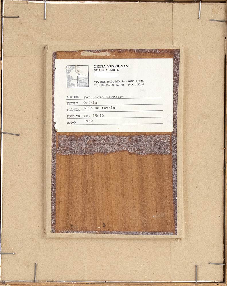 Firma, titolo e data in alto a destra: Ferrazzi, Orizia, 1939