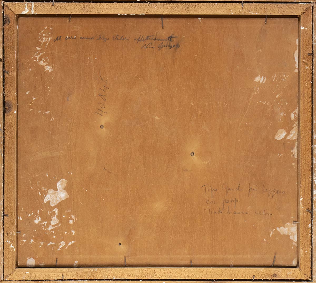 Firmato e datato in basso a sinistra "N. Springolo, 1950". Al retro dedica "Al mio amico Diego Valeri affezionatamente Nino Springolo".