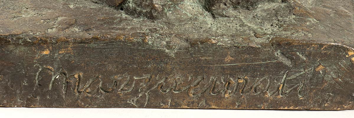Firma incisa “Mazzacurati” sul retro della base d’appoggio della statua