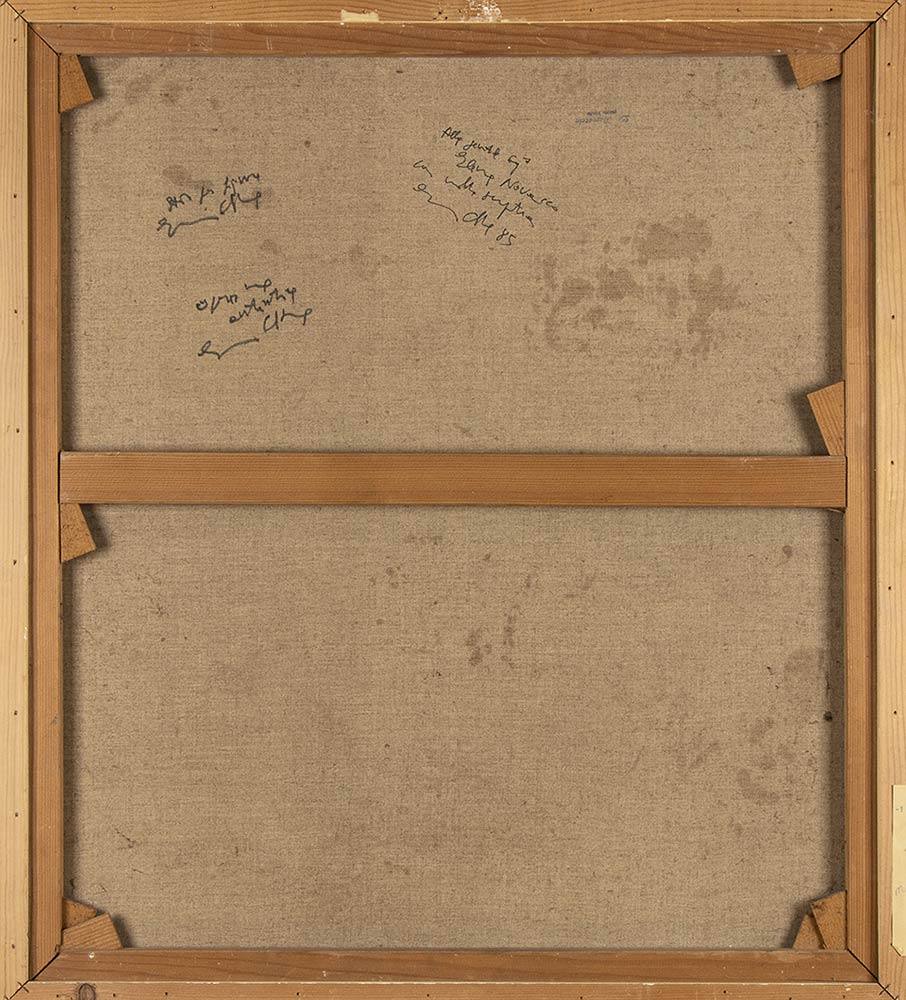 Firmato in basso a destra “Calabria”. Al retro presente una dedica “Alla gentile signora Elena Novasco con molta simpatia Ennio Calabria ‘85” più firma con dichiarazione di autenticità “Opera mia autentica Ennio Calabria”